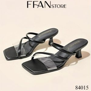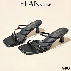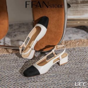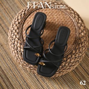 Dép sandal nữ búp bê bệt Hers cao cấp mũi vuông 206 hở mũi FFAN STORE, 1 phân màu đen nâu trắng