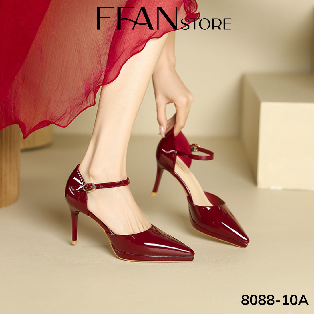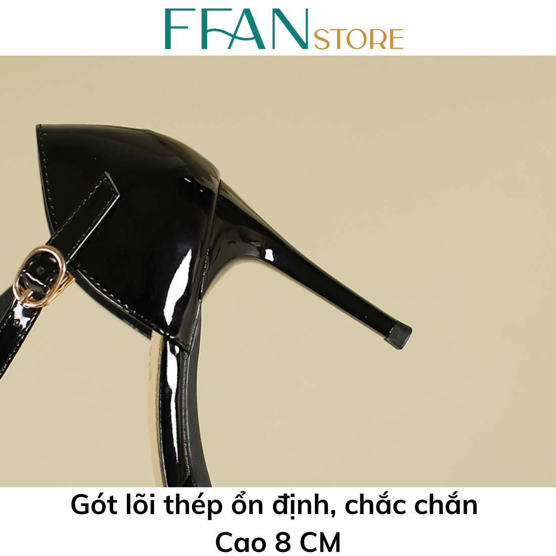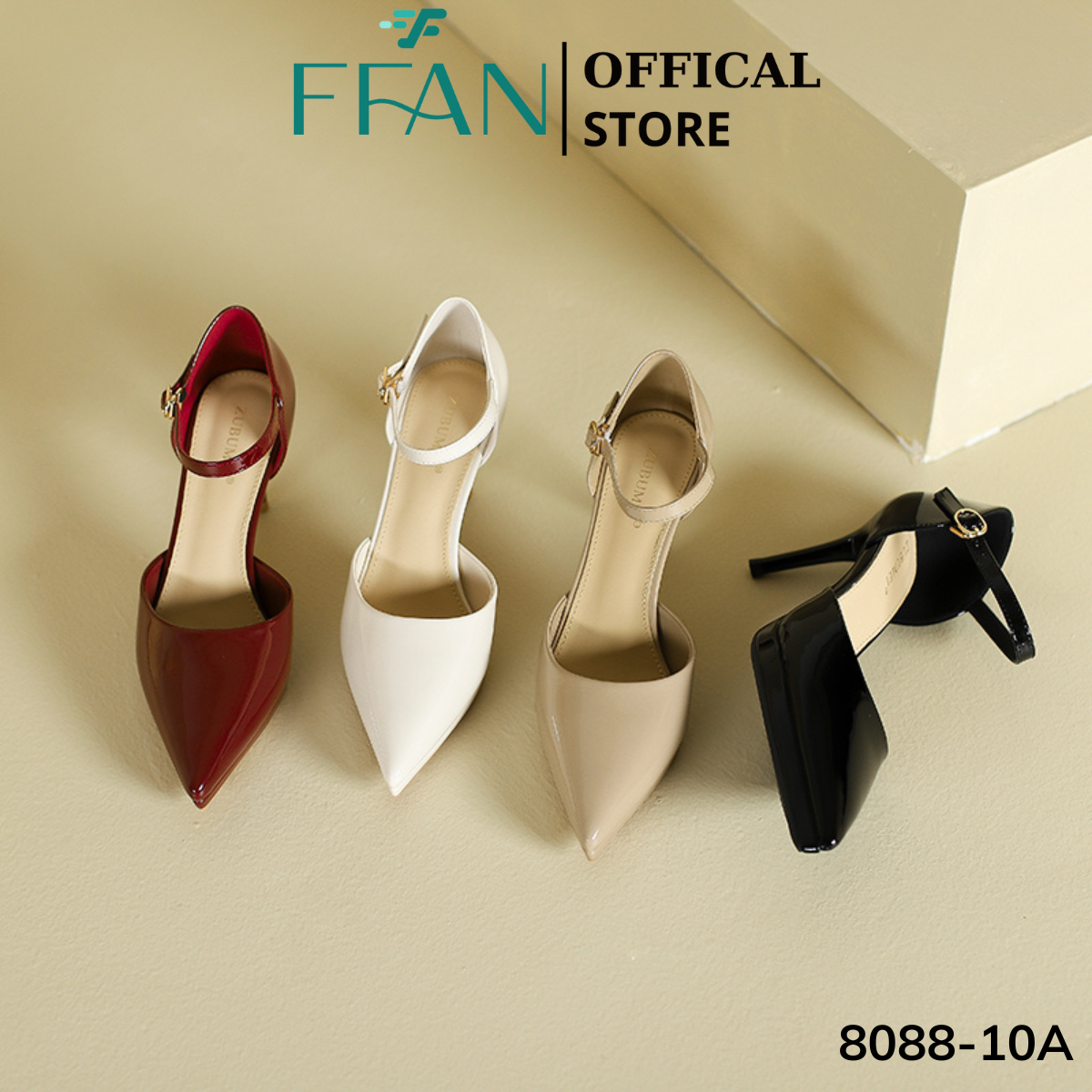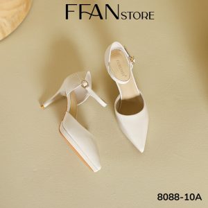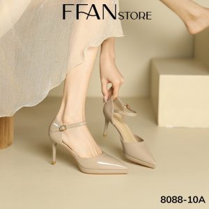 Giày cao gót mũi nhọn đế đúp gót nhọn 8 phân [da bóng mềm mại] 808810A FFAN STORE, bít mũi quai cài màu đen be đỏ trắng