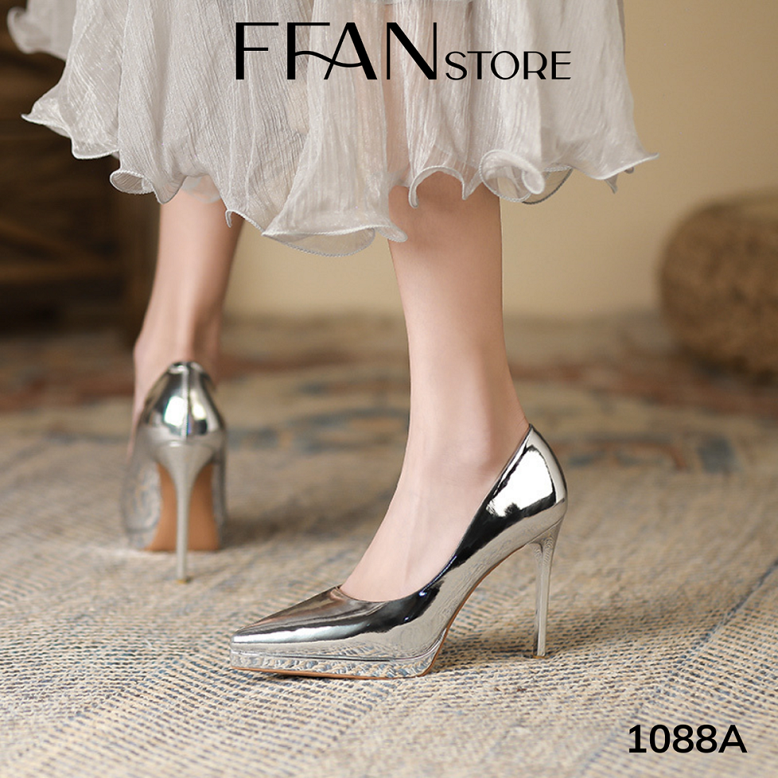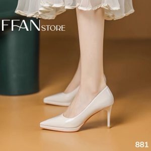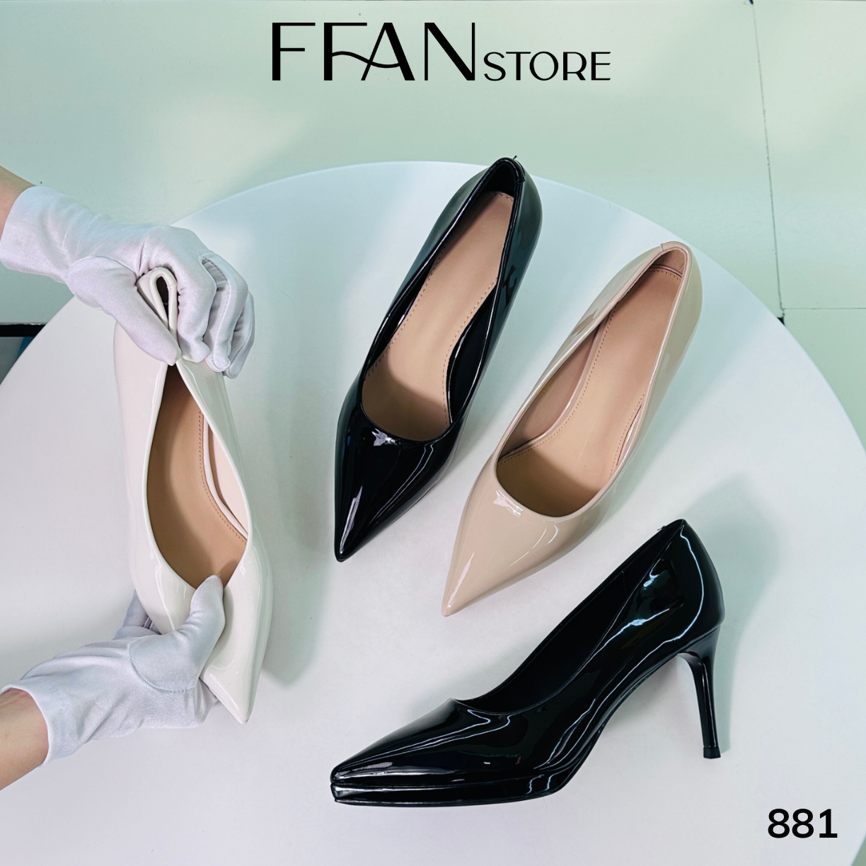 Giày cao gót mũi nhọn đế đúp gót nhọn 8 phân [da bóng mềm mại] 881 FFAN STORE, bít mũi màu đen be trắng sữa