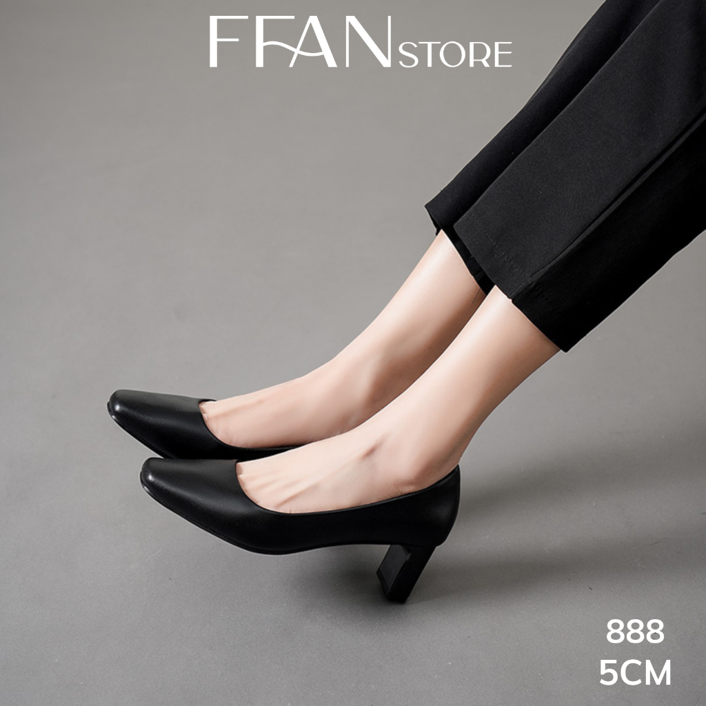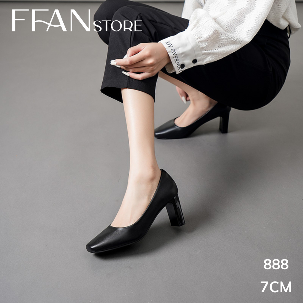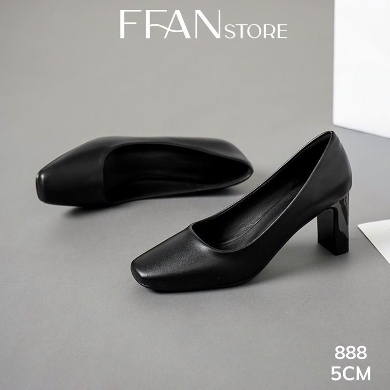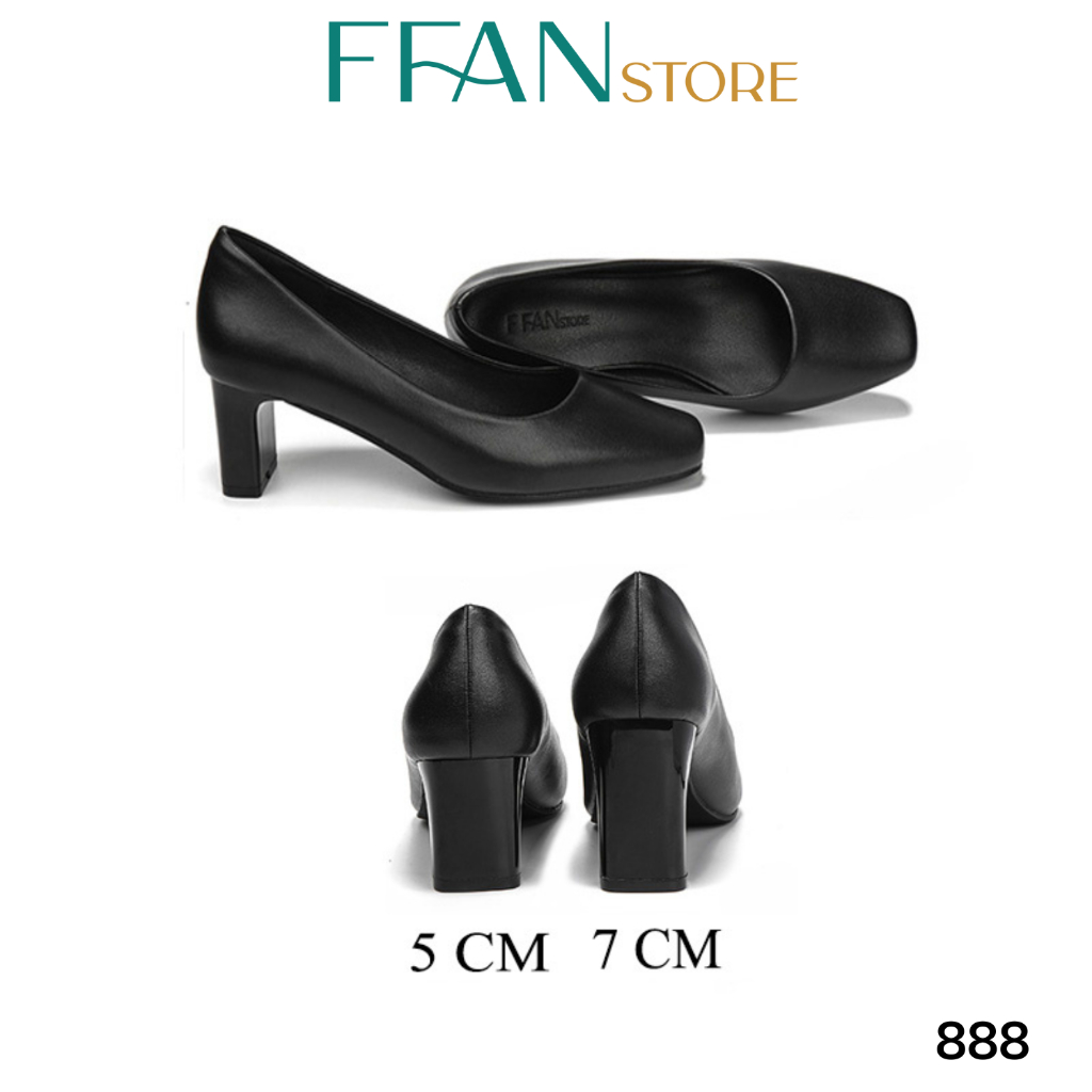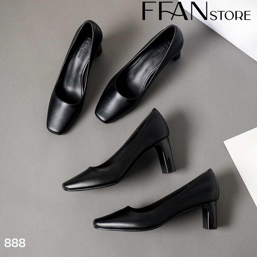 Giày cao gót mũi vuông nữ đế vuông [da thật] 888 FFAN STORE, da mềm mại công sở bít mũi 5 7 9 phân màu đen big size