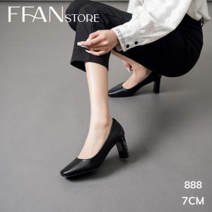 Hãy là người đầu tiên nhận xét “Giày cao gót mũi vuông nữ đế vuông [da thật] 888 FFAN STORE, da mềm mại công sở bít mũi 5 7 9 phân màu đen big size”