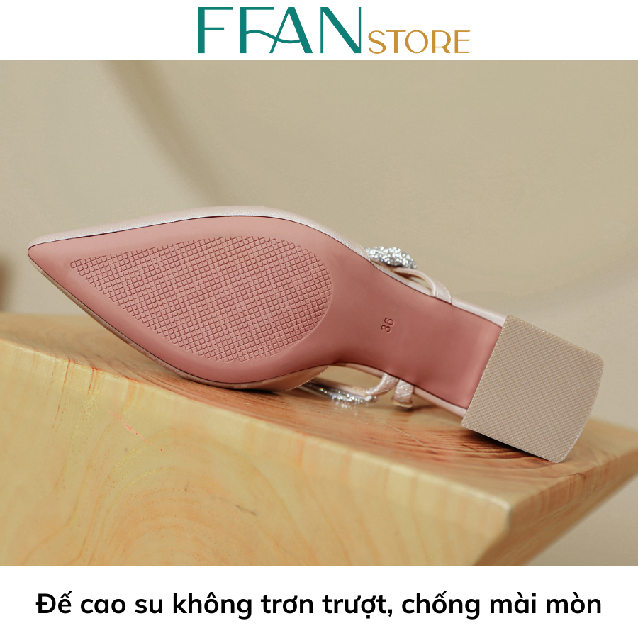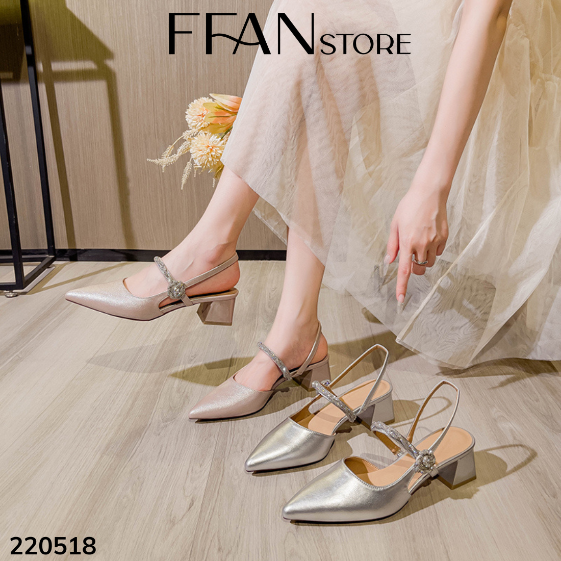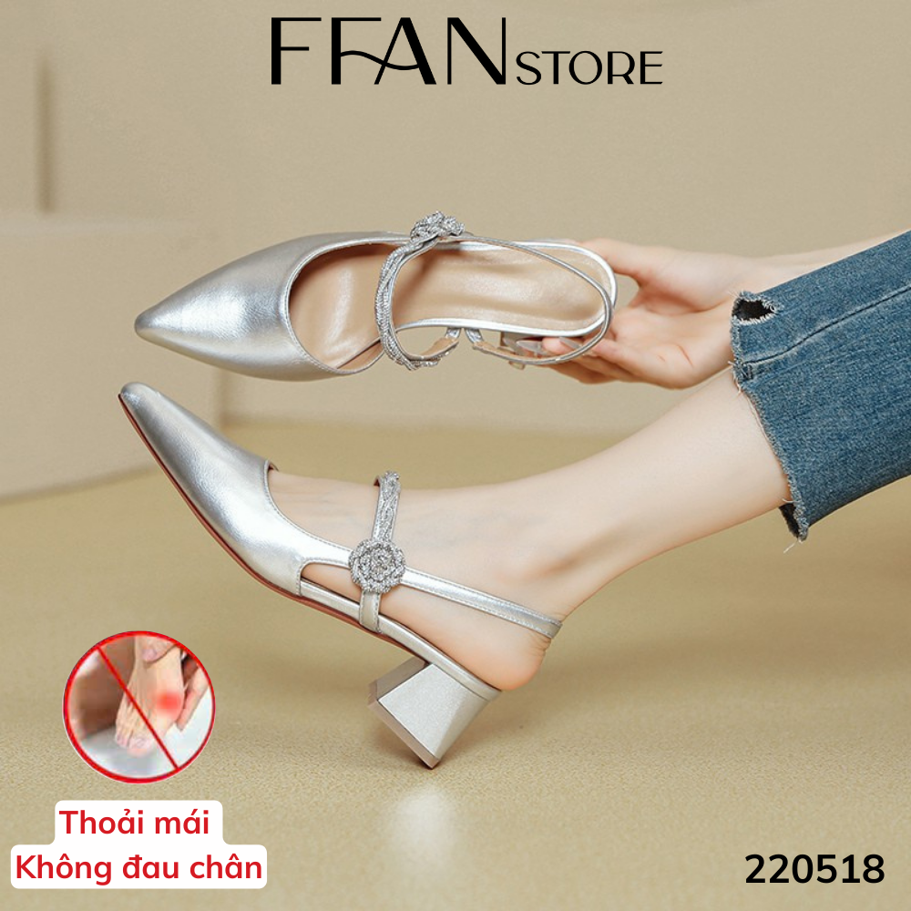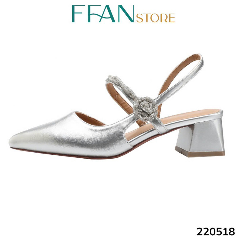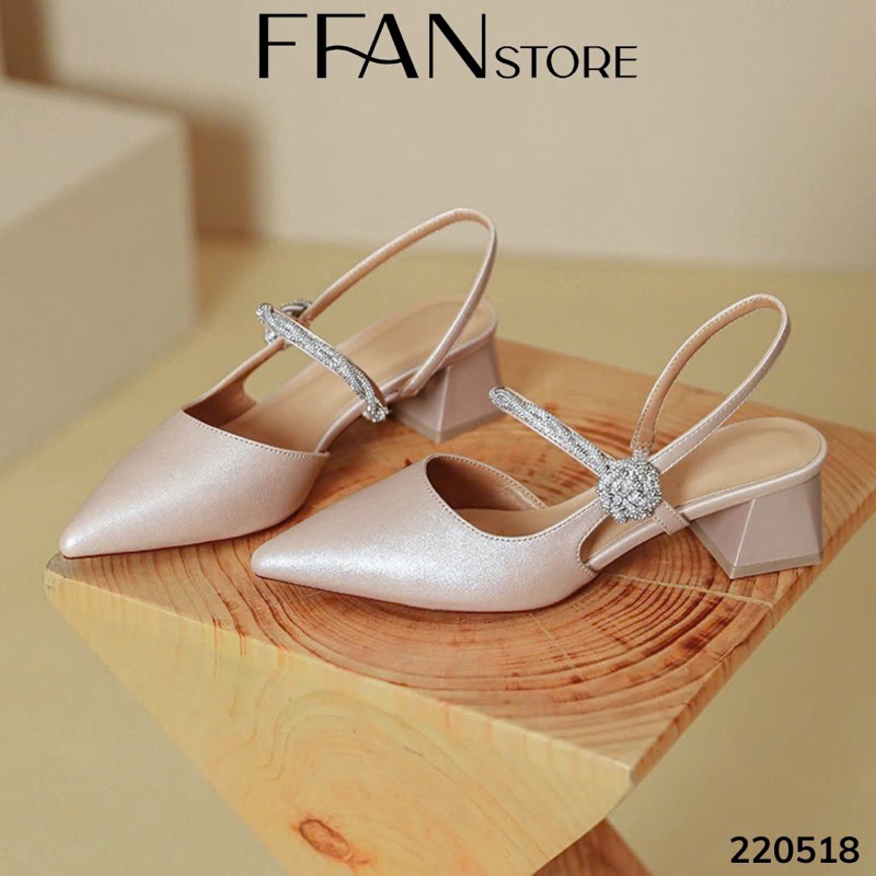 Giày cao gót nữ đế vuông mũi nhọn [da mềm mại] hở gót 220518 FFAN STORE đính đá slingback 5 phân