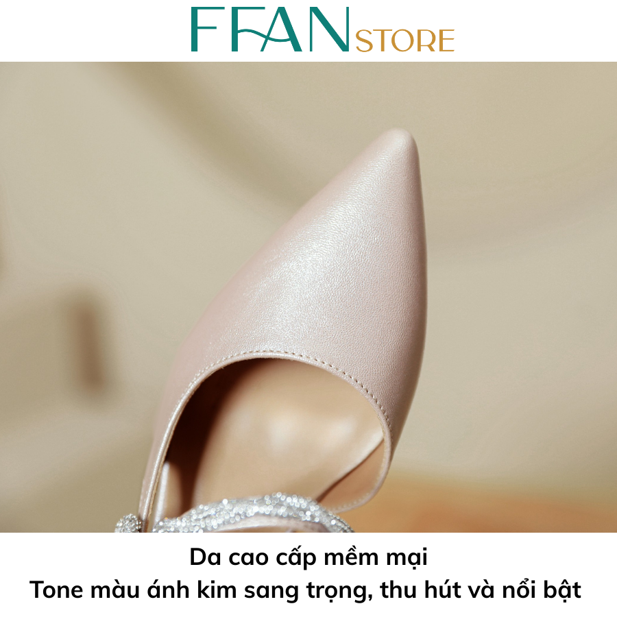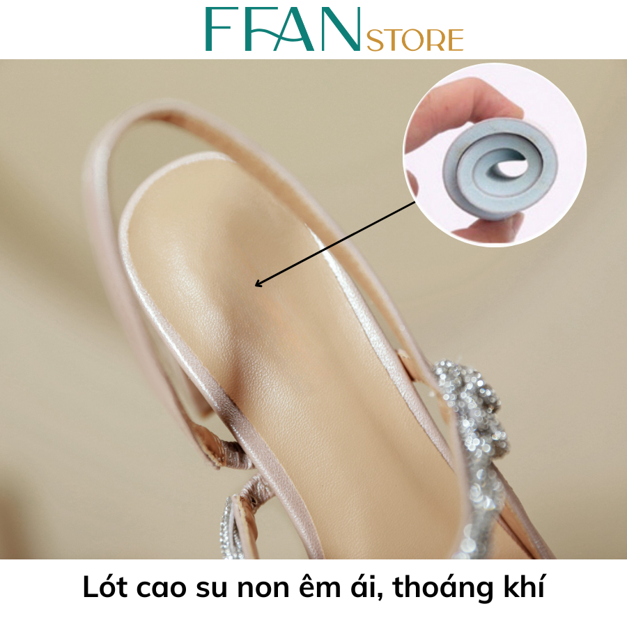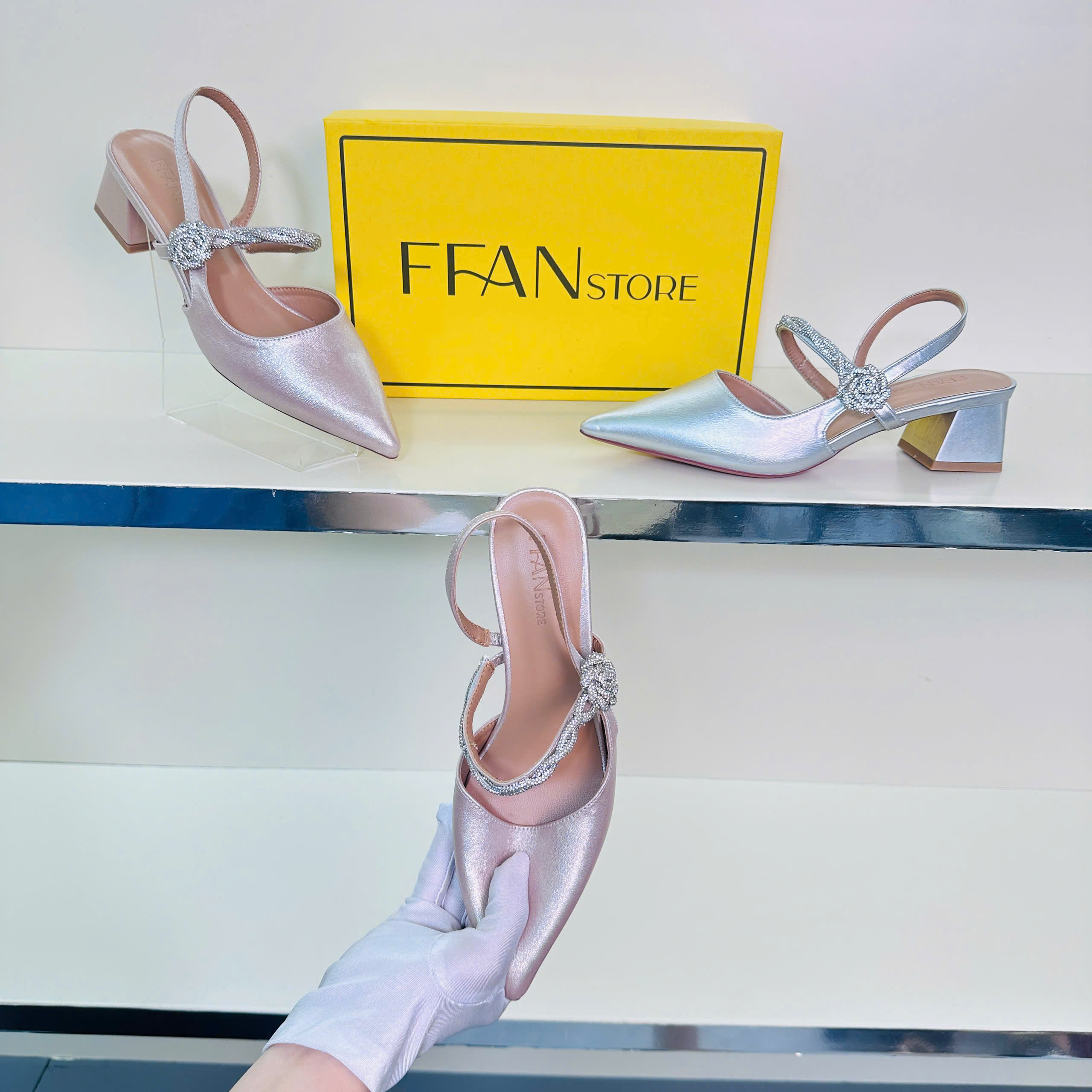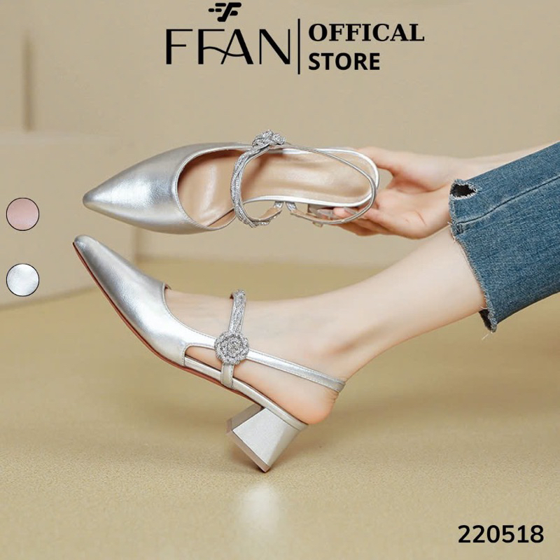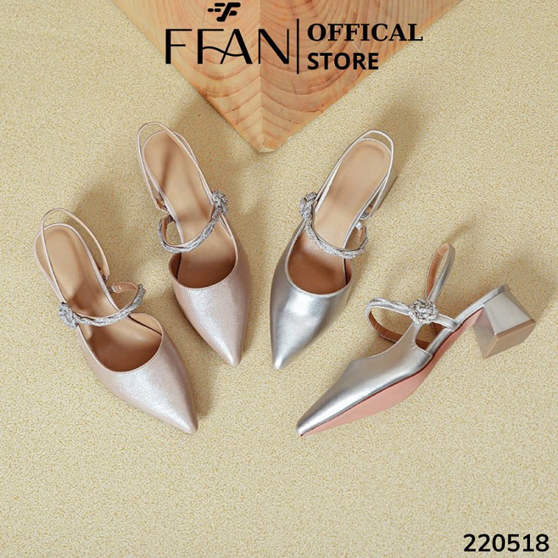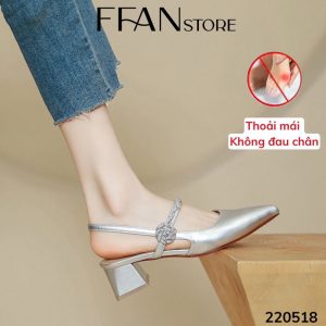 Giày cao gót nữ đế vuông mũi nhọn [da mềm mại] hở gót 220518 FFAN STORE đính đá slingback 5 phân