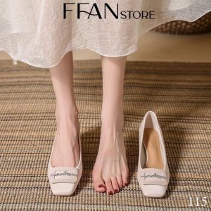 Hãy là người đầu tiên nhận xét “Giày cao gót nữ đế vuông mũi vuông da mềm mại 115 FFAN STORE, bít mũi 5 phân đính đá màu đen nâu trắng sữa xám big size”