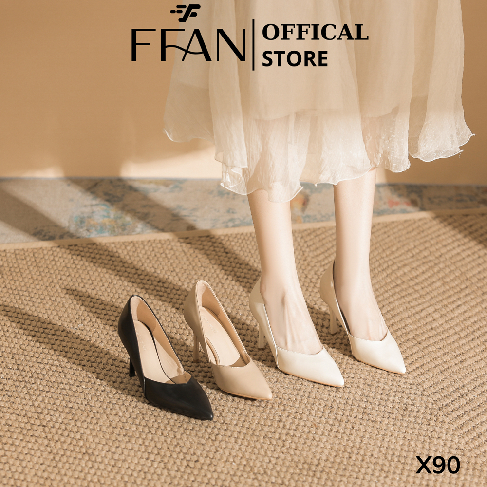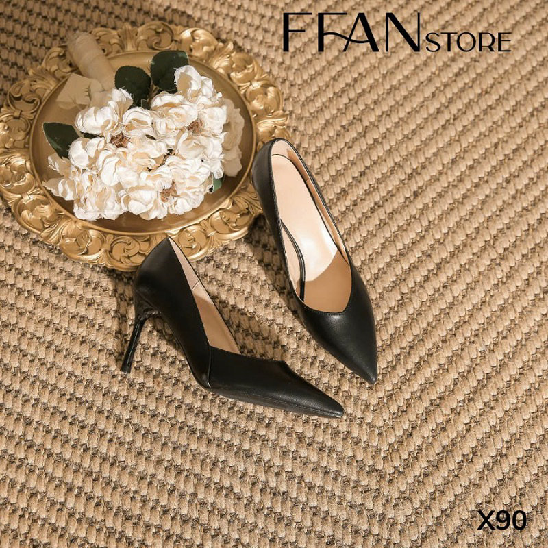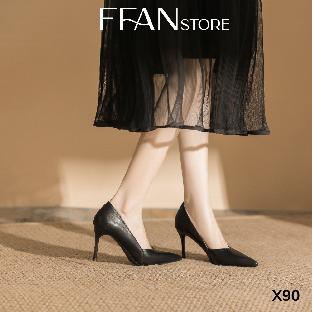 Giày cao gót nữ mũi nhọn [da thật] gót nhọn X90 FFAN STORE, 6 8 phân da mềm mại big size màu đen be trắng