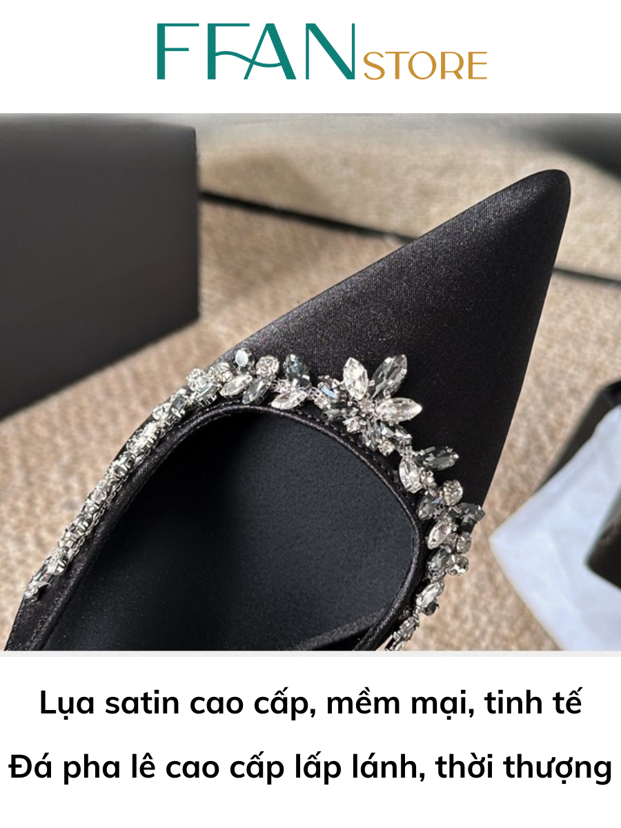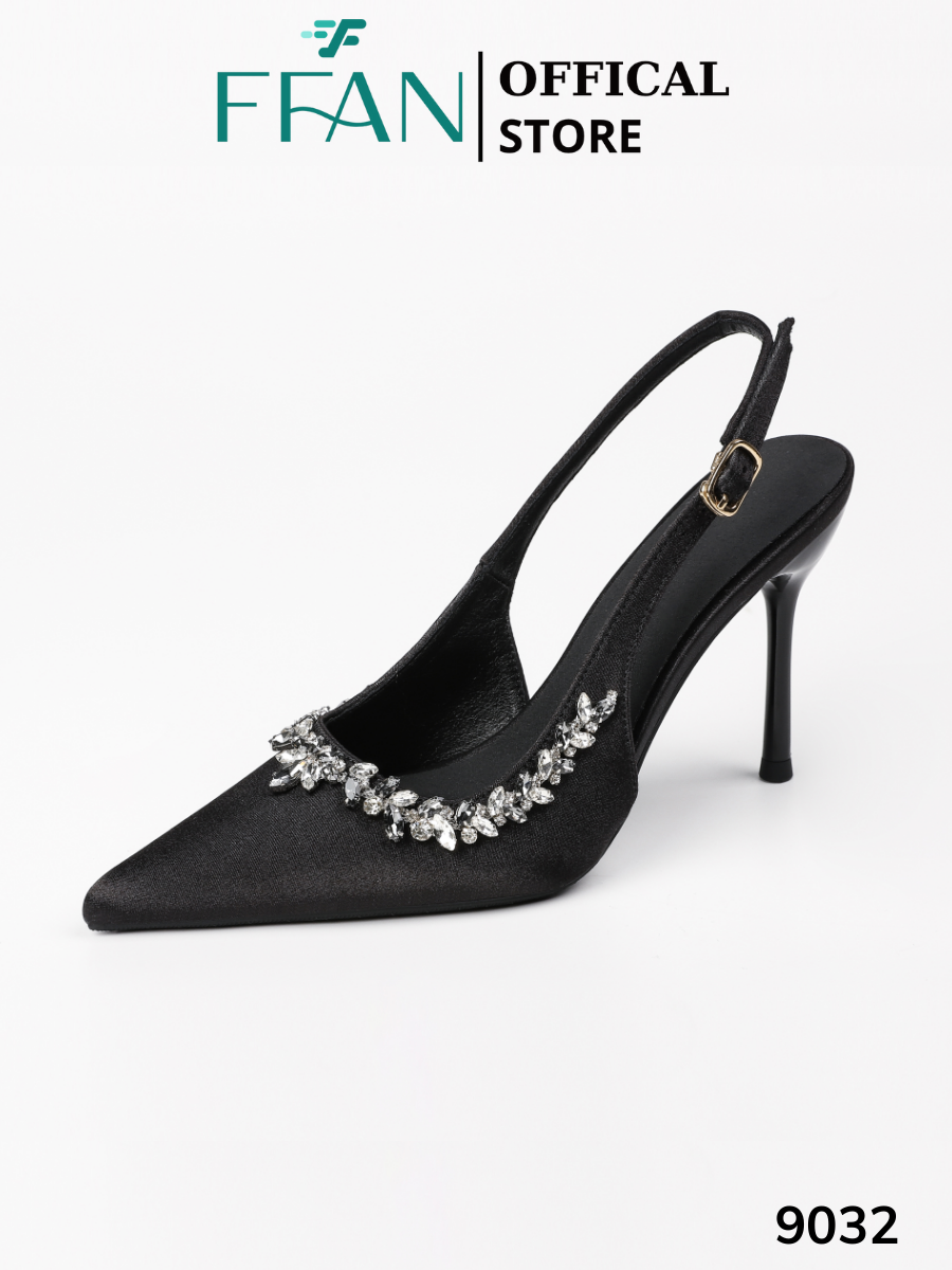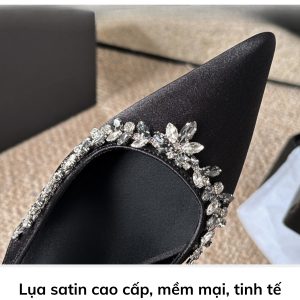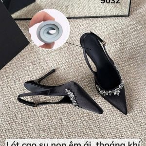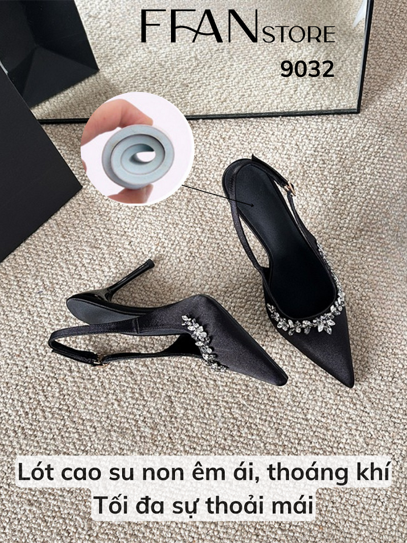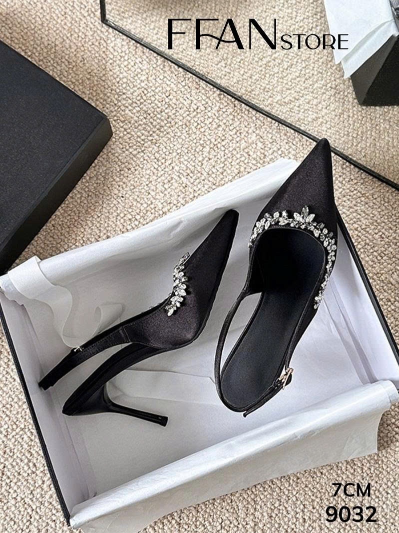 Giày slingback mã 9032 với thiết kế lụa satin mềm mại, đính đá lấp lánh tinh tế, tôn dáng uyển chuyển, thoải mái suốt ngày dài – từ tiệc tùng đến những buổi hẹn quan trọng.