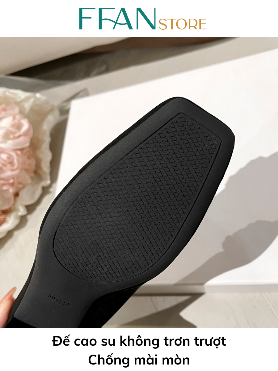 Thiết kế mũi vuông hiện đại kết hợp cùng da lộn cao cấp mang đến cảm giác mềm mại tối đa. Mỗi bước đi đều là sự kết hợp hoàn hảo giữa sự thoải mái và vẻ đẹp lấp lánh.
